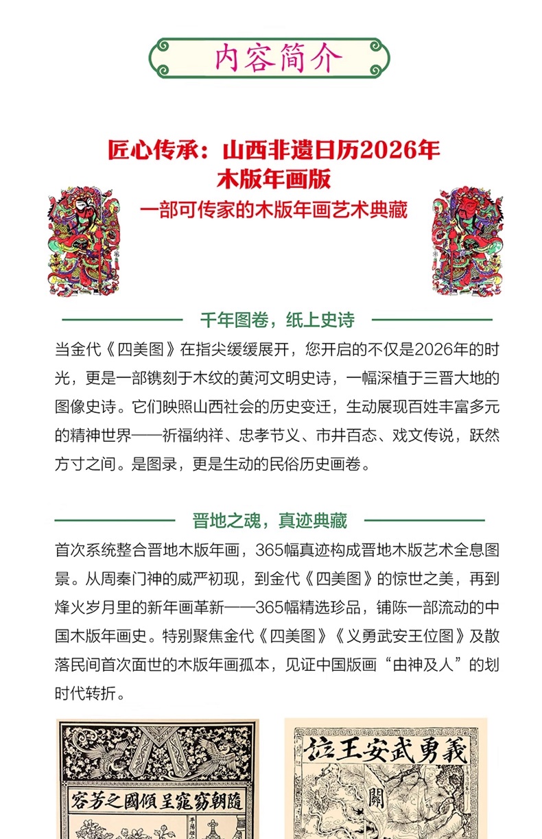 【刷邊特裝版】 2026山西非遺 木版年畫日曆 非遺技藝 365幅晉地年畫精粹 收錄金代至近代孤品 涵蓋門神戲劇民俗等年畫博