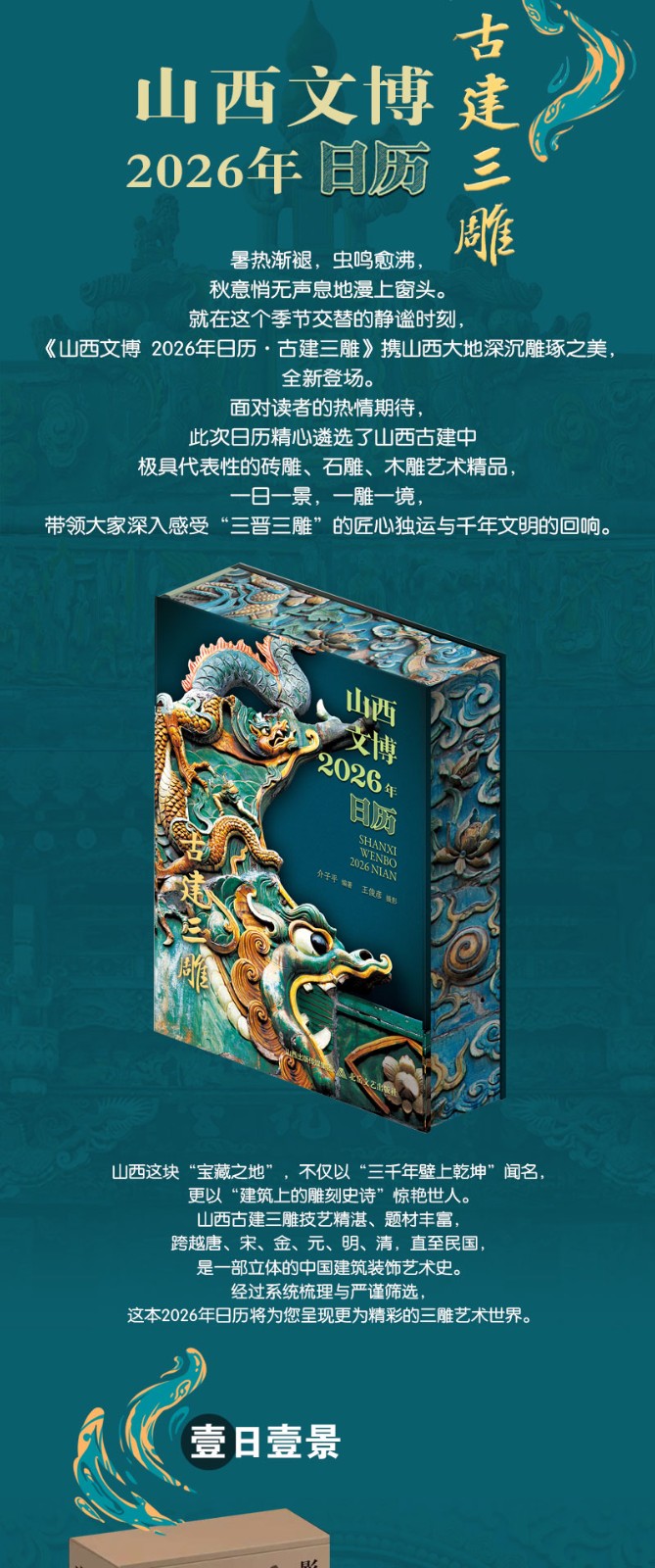 《2026年山西文博日曆 古建三雕》 石雕磚雕木雕 三雕三晉大地文化 全景展現中華文化魅力 建築裝飾藝術史 丙午馬年禮物禮品