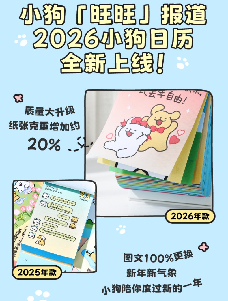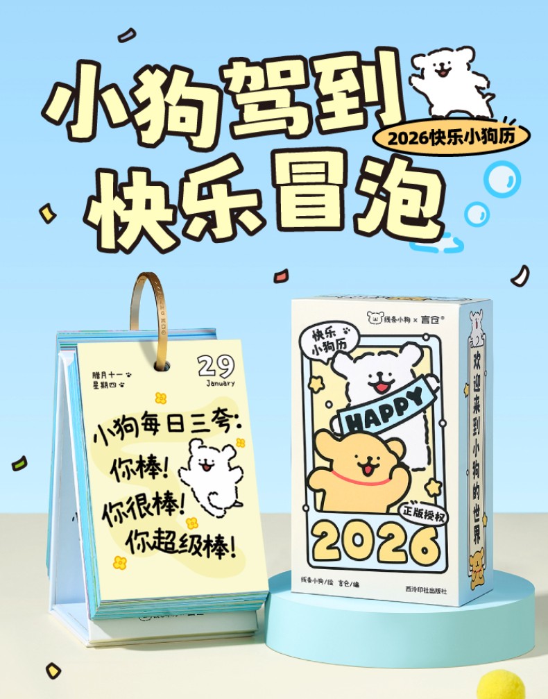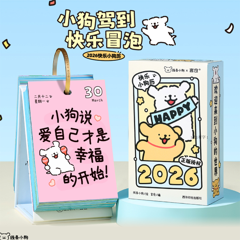 線條小狗2026日曆 快樂小狗桌曆 新年生日禮物