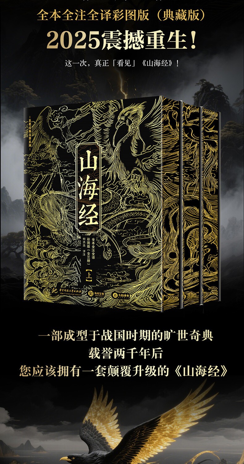 5.一套值得珍藏一輩子的《山海經》,不只書更是藝術品:滿版燙金封面設計,以高端藝術畫冊的標準打造顛覆傳統的《山海經》,一套三冊全部硬殼精裝,收藏有格調,禮贈顯品位!內頁使用仿古藝術紙,模擬古籍手感,閱讀儀式感max!隨書附贈11張《山系復原輿圖》+《華夏世系表》+32頁《神話思維導圖》,既是知識寶藏,也是藝術品級藏書!